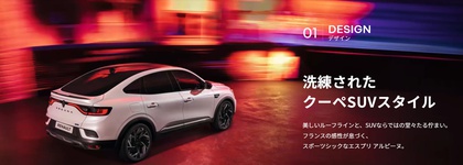 フロントとリアのスキッドプレート、ホイールアーチプロテクションがSUVらしさを強調し、ルーフラインとウインドウラインは都会的で優雅なラインを描く。ルノー アルカナのダイナミックなエクステリアを形作っている。